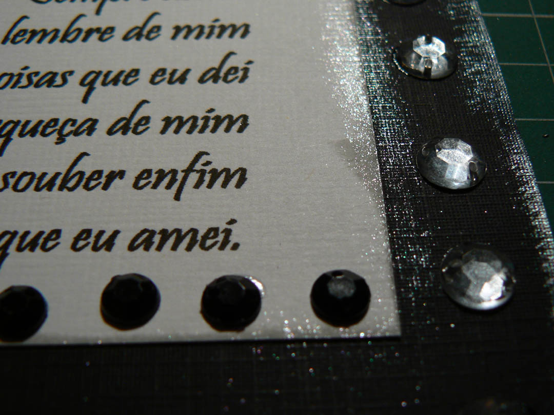 Sobre o cardstock texturizado preto eu pincelei tinta acrílica prateada BEM de leve, só pra dar um suave brilho.