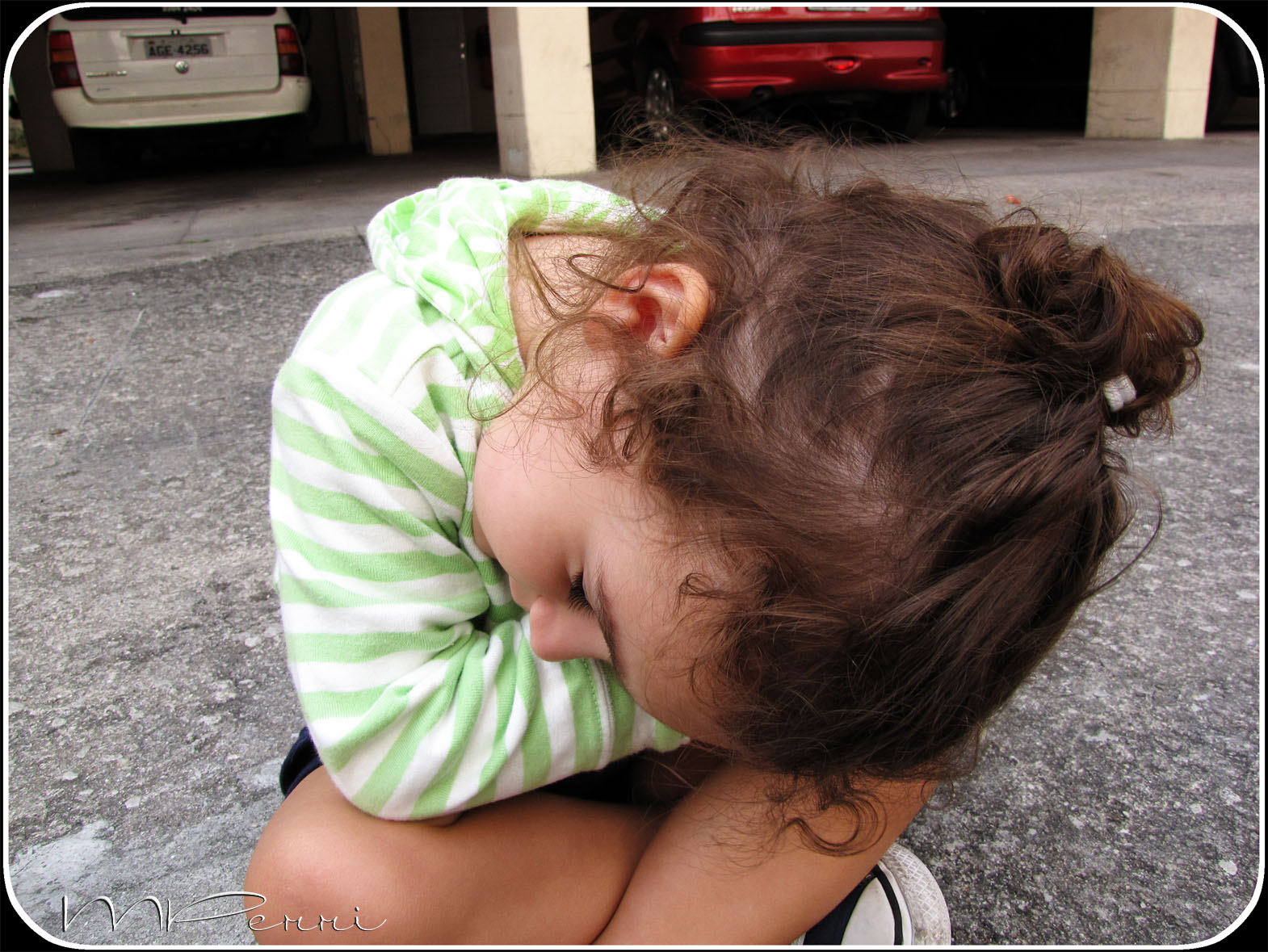 Depois da segunda tentativa frustrada, ela me olhou, com os olhos alagados, beicinho caído e falou com uma voz tristonha: "Mas, mamãe, eu só quiio disfilá um poquinho!"